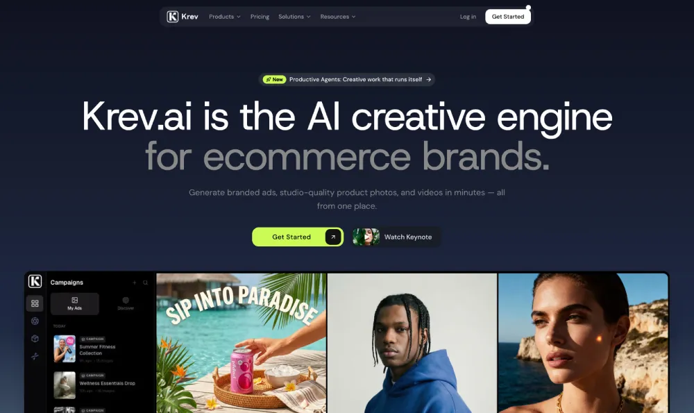 Krev is an innovative AI platform that transforms a single product image into professional studio quality visuals and high performing campaigns. It empowers brands to create compelling content at scale without traditional production hurdles. Through intelligent agents, Krev conducts deep market research, analyzes competitor performance data, and aligns outputs with unique brand identity for maximum impact across digital channels. The platform streamlines the entire creative workflow from strategy to final assets. Users upload one image and generate diverse materials optimized for Meta, TikTok, Instagram, and Google. Krev delivers agency level results at a fraction of the cost while enabling teams to produce significantly more variations each week. Its design aware pipeline ensures clean editorial outputs that maintain visual consistency and drive conversions effectively. Key capabilities within Krev focus on performance driven creation. The system supports product photography, short form videos, lifestyle shots, and AI generated user content styles. Brands benefit from real time insights drawn from an extensive library of live campaign data, allowing quick remixing of proven concepts tailored to specific products and categories. Krev integrates research, copywriting, and visual generation into one seamless experience for modern marketing teams. Overall, Krev accelerates advertising production while reducing expenses dramatically. It helps over two thousand five hundred active brands stay competitive in fast paced e commerce environments by turning basic assets into launch ready creatives that convert.